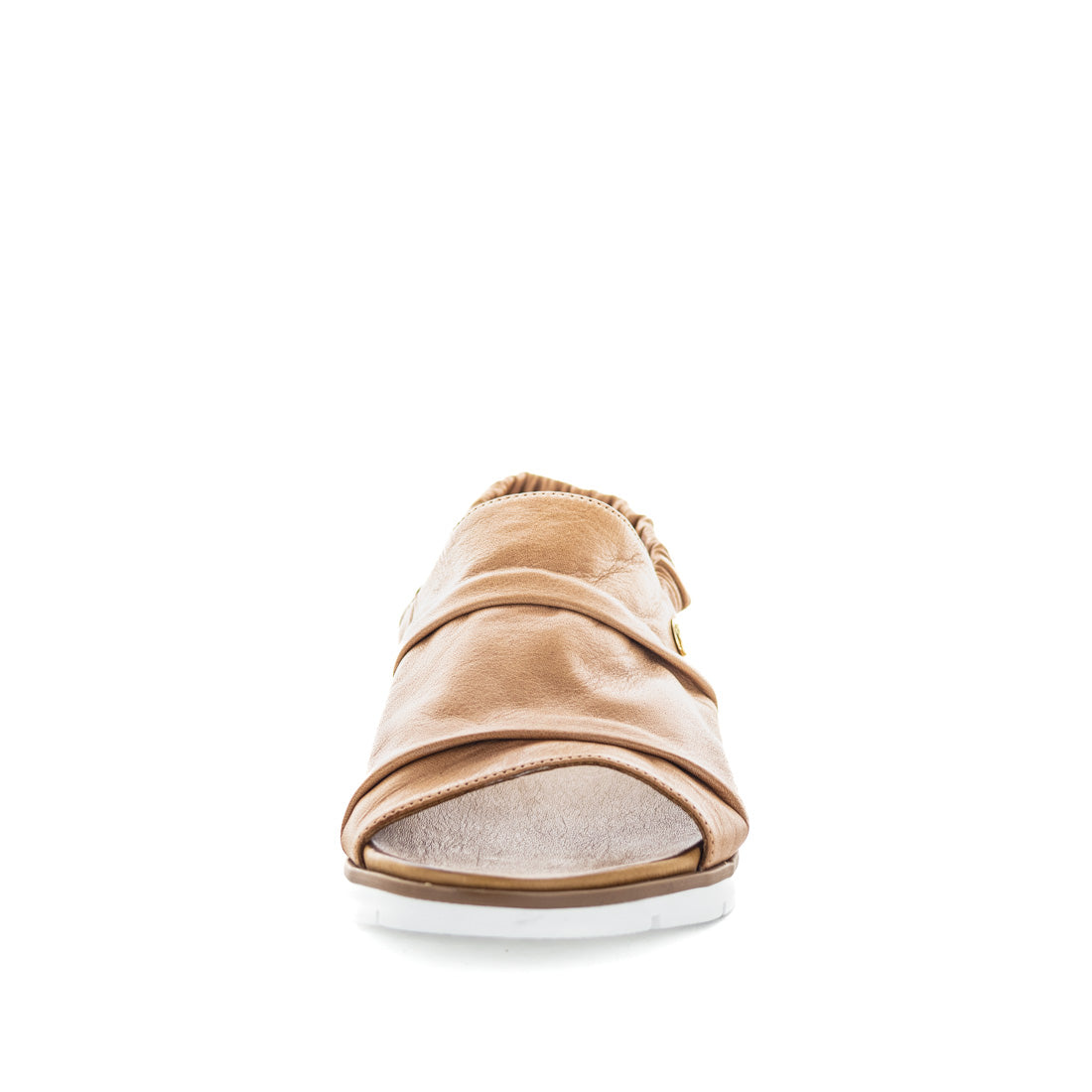 Crafted from supple leather, Betta Women's Sandals deliver effortless comfort with a thoughtfully designed slingback silhouette. The elastic back strap and side gusset work together to provide secure support without sacrificing flexibility, while the leather lining and cushioned sock ensure all-day wearability. Built on a 25mm unit with a flexible, durable outsole, these slip-ons transition seamlessly from casual outings to relaxed weekend wear. The tan finish offers versatile styling across your wardrobe.