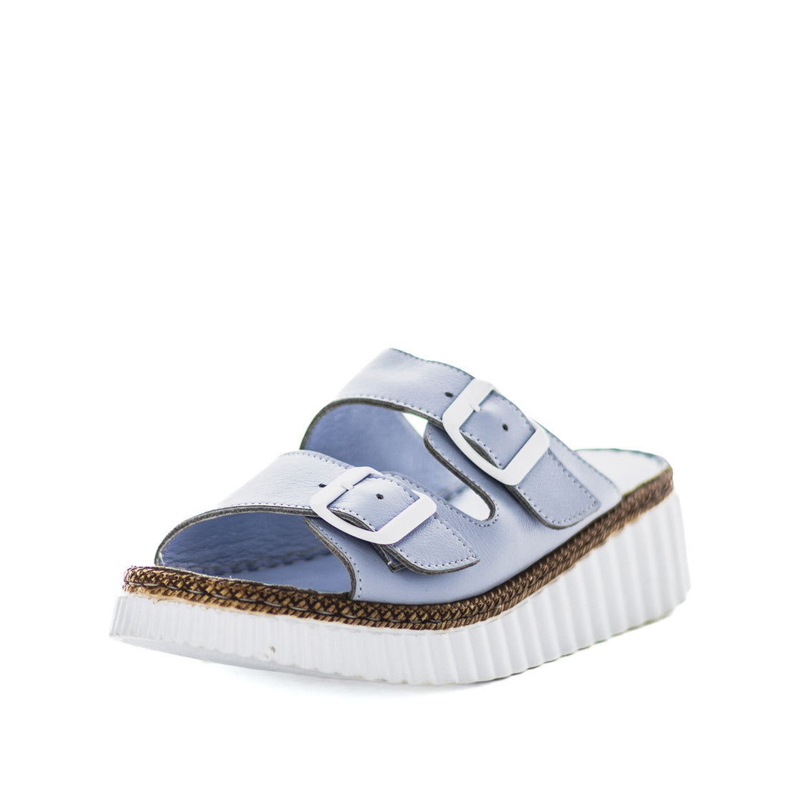 Halo Sandals combine contemporary style with practical comfort. Crafted from soft leather with a matching leather lining and padded sock, these slip-ons deliver cushioned support throughout the day. Dual adjustable buckle straps ensure a personalised, secure fit, while the distinctive rope-look midsole adds visual interest. Built on a 40mm platform wedge, they offer elevated comfort with a modern silhouette. The flexible, durable construction makes them an ideal choice for both casual outings and everyday wear.
