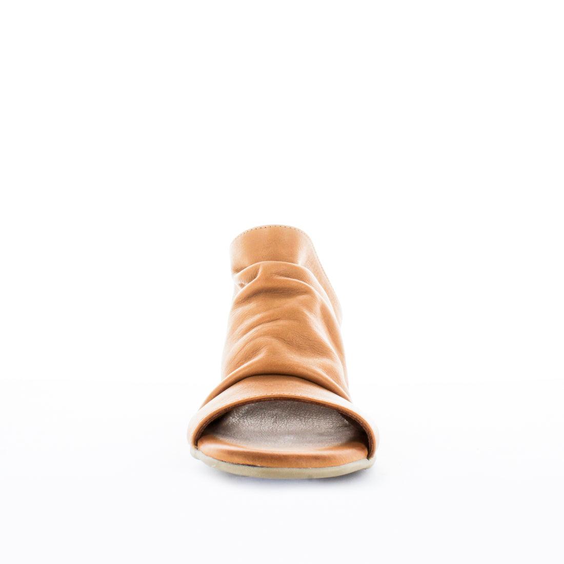 - Ruched soft leather upper open toe scuff